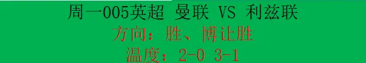 综合来看,曼联主场气势如虹、战意拉满、历史碾压,利兹联残阵出击、客场瘫痪、进攻哑火,本场看好曼联主场轻松拿下,甚至踢穿盘!