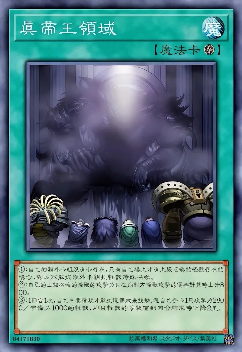 “帝”卡组围绕上级召唤展开,核心思路是快速祭品召唤“帝”怪兽,触发效果控制场面。魔法/陷阱真帝王领域 :提供额外的祭品来源,允许解放对方怪兽进行上级召唤,规避祭品不足的问题。