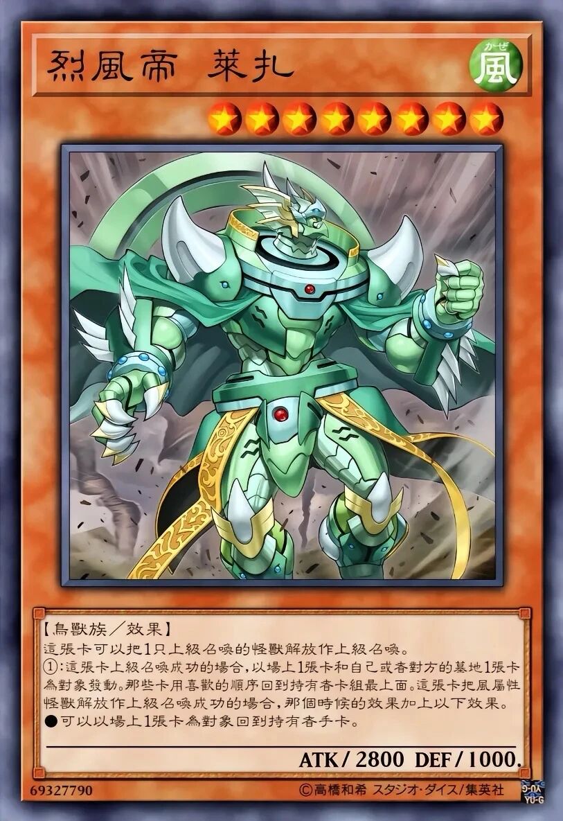 烈风帝 莱萨-将场上卡弹回卡组;解放风属性时追加抽牌