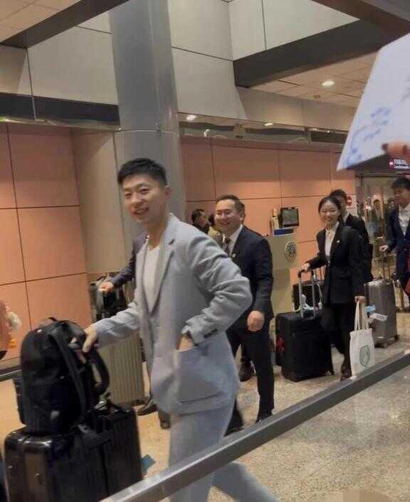 马龙跟工作人员招手打招呼,旁边的人热情洋溢,明显是个热烈欢迎马龙的派对啊!