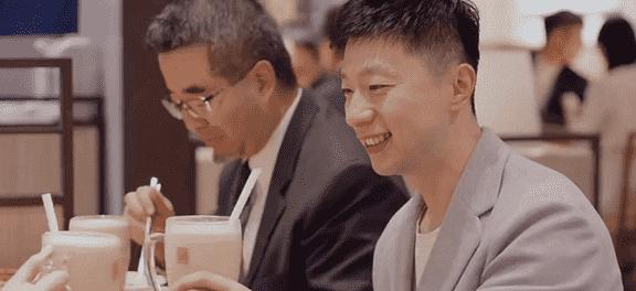 旁边的工作人员还在琢磨工作上的事儿,结果马龙却一脸痴迷地盯着手里的奶茶,笑得差点儿嘴都合不上了!