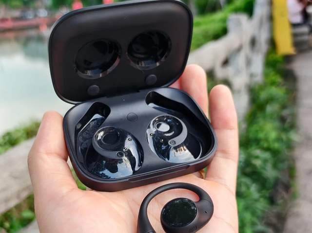 佩戴体验:这款耳机采用三角稳固结构设计,耳挂佩戴很稳定,就算运动时戴也不会掉。不过单耳重量有 9 克,戴久了还是会有点压迫感。
