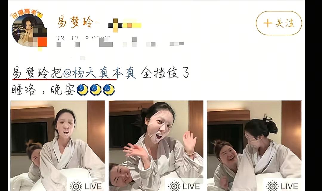 她第一时间直接发出了和杨天真的合照,并配文易梦玲把杨天真挡住了。