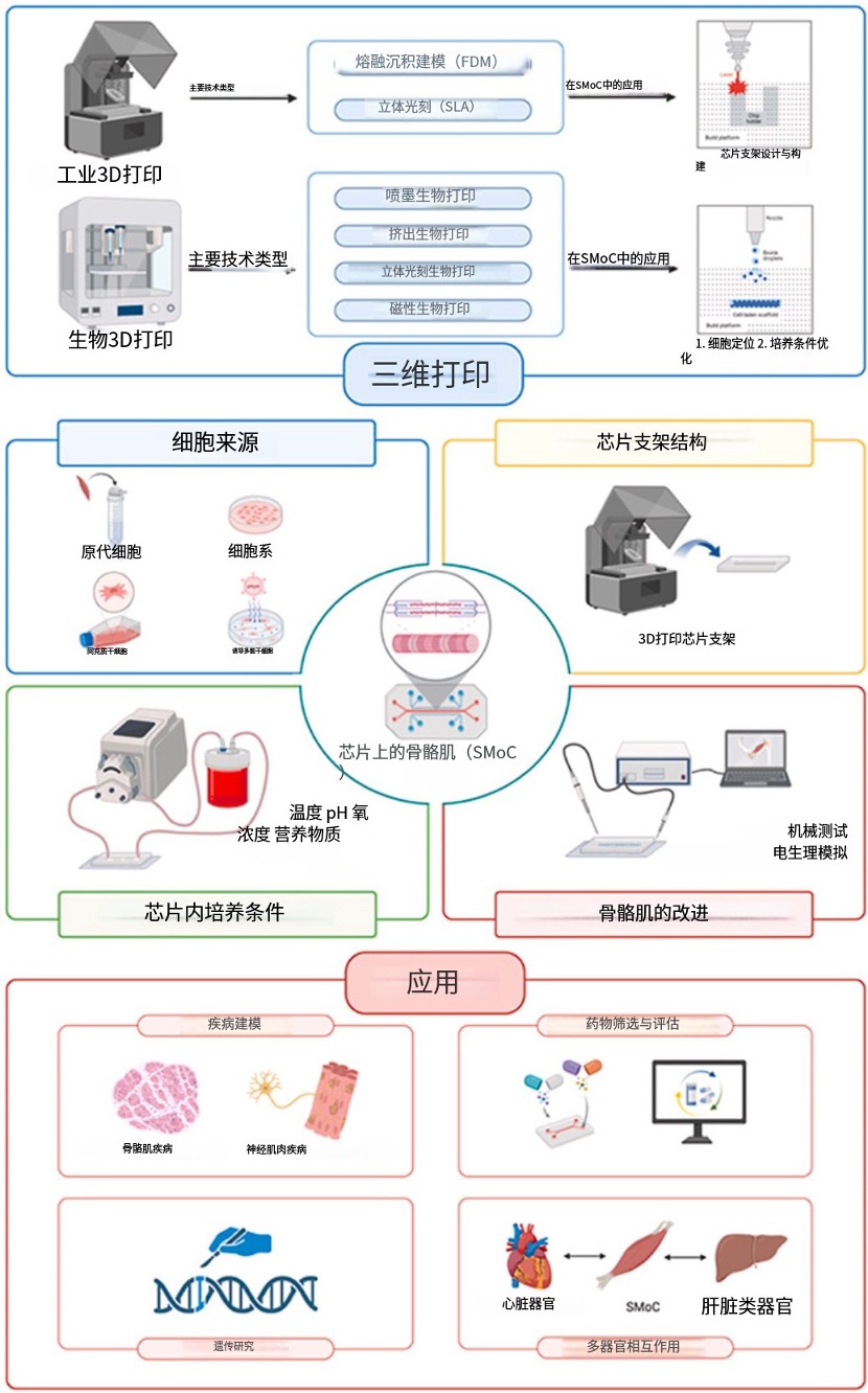 然而,由于骨骼肌具有复杂的解剖结构和独特的生理功能,3D 打印在骨骼肌芯片(SMoC)模型中的应用仍然相对有限。