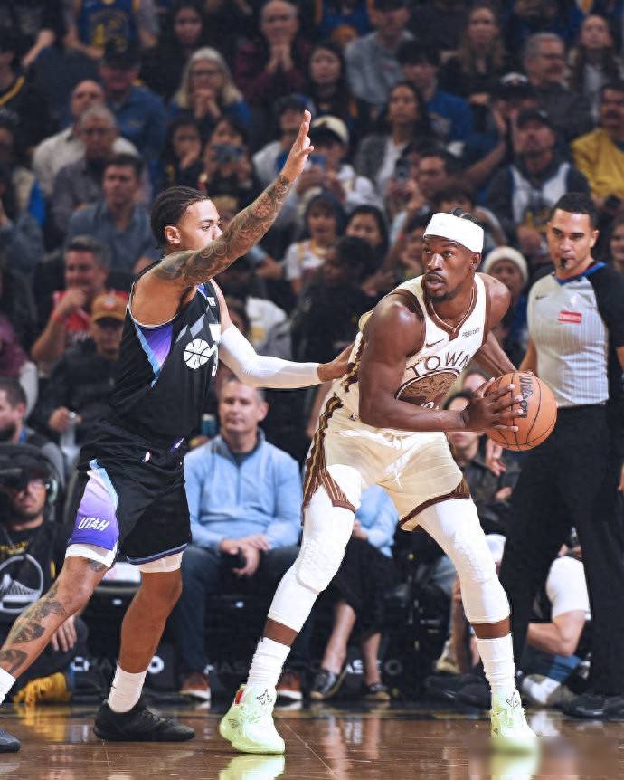 勇士这场能赢下来,全靠库里一个人在扛着球队打,巴特勒组织不起来,替补也没人站出来得分,全队就靠库里撑着,爵士那边问题更明显,乔治打得不错,但其他队友不给力,马尔卡宁状态不好,努尔基奇一分没得,内线完全成了摆设,勇士换了新地板主题叫“橡树之城”,库里还特意穿了双老鞋,说白了就是想给球队加点情绪价值,让球迷看到点希望。