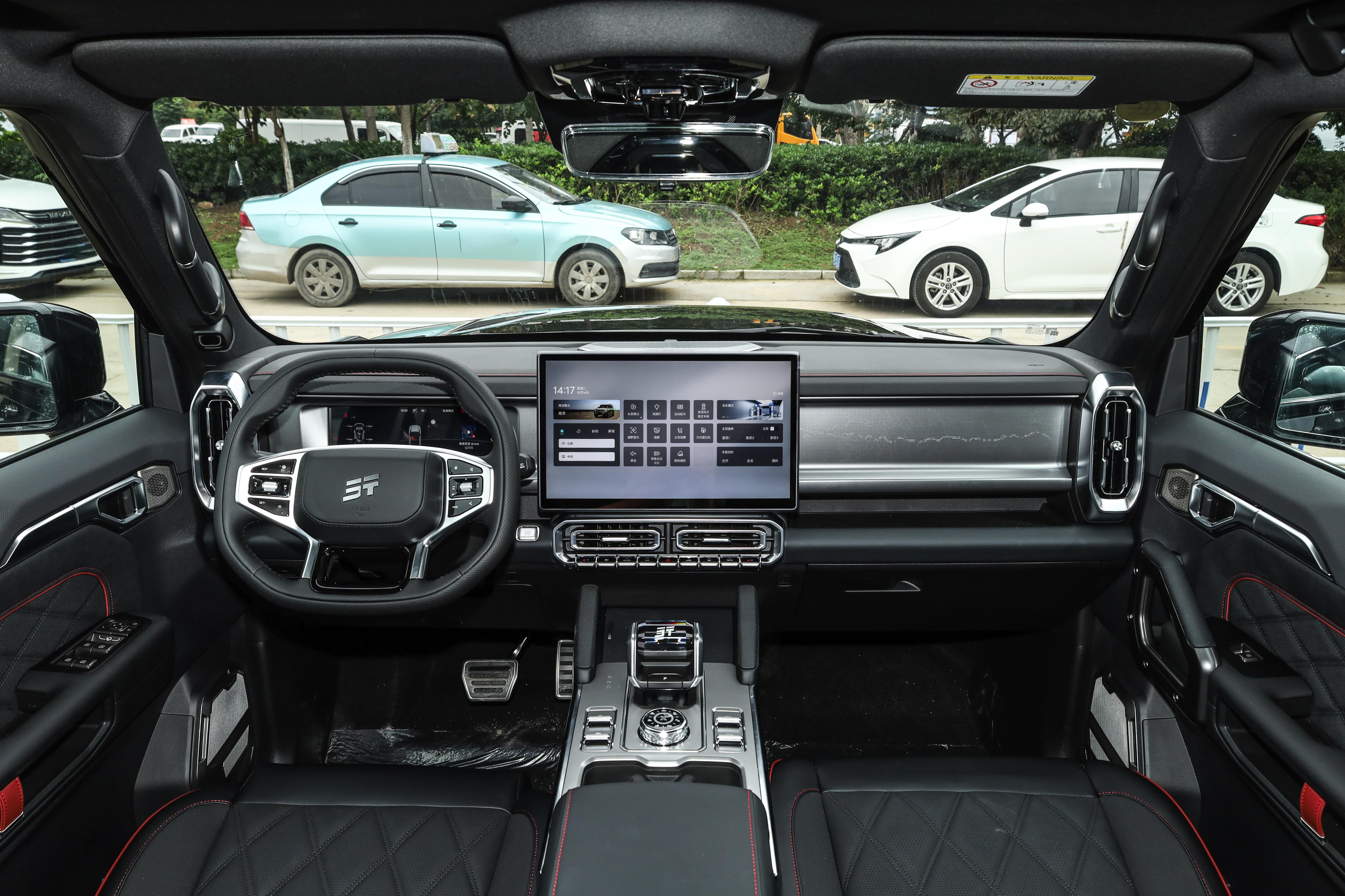 针对越野时可能出现的翻滚风险,这款车还做了车头强化结构,相当于自带了防滚架,复杂路况下也特别安全。碰撞防护也到位,全系标配前排双安全气囊、前排侧安全气囊、前后排头部气帘,全方位保护驾乘者,不管是正面撞、侧面撞,都能减轻伤害,全家出行也能放心。