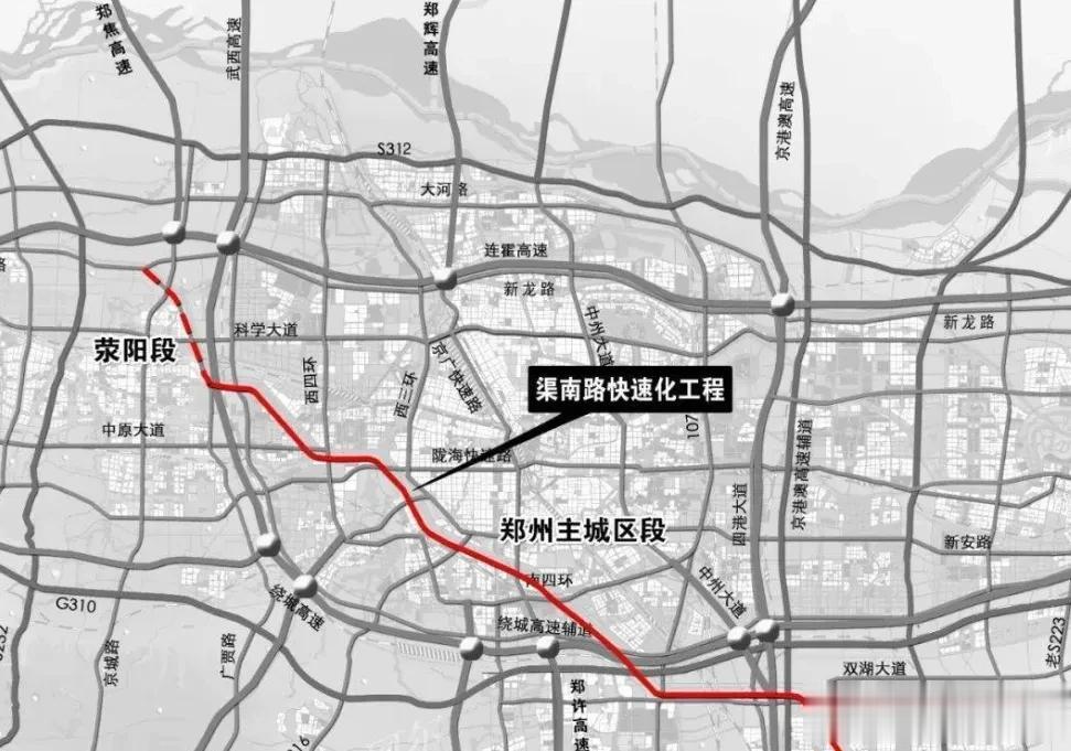 项目概况:郑州市渠南路快速通道工程(陇海路至南绕城高速)北起防汛路,沿南水北调干渠向南至绕城高速,道路全长19417米,城市快速路,规划红线宽60米。