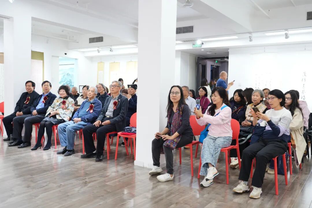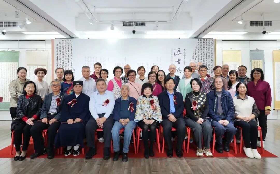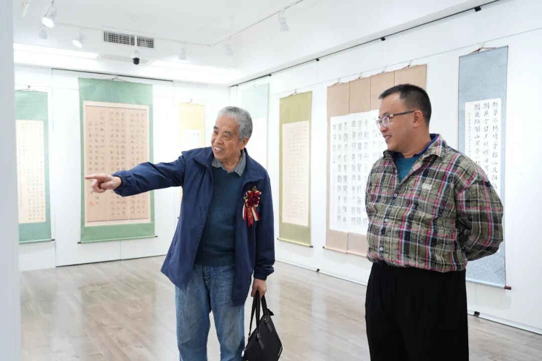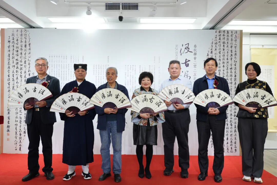 主理嘉宾郭思贤、陈小容、赵铁信、路洪明、曹玉文、任宇等共同手持印有 “汲古漏痕” 展览主题的扇面合影留念,为整场活动留下兼具文化意蕴与纪念价值的瞬间,开幕式以别开生面的方式结束。郭思贤为到场嘉宾逐一赠送此次展览专属扇面,既是对嘉宾支持的诚挚回馈,也让传统书法之美以雅致便携的形式延续,为这场文化交流活动增添了别样的纪念意义。