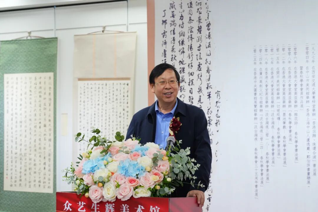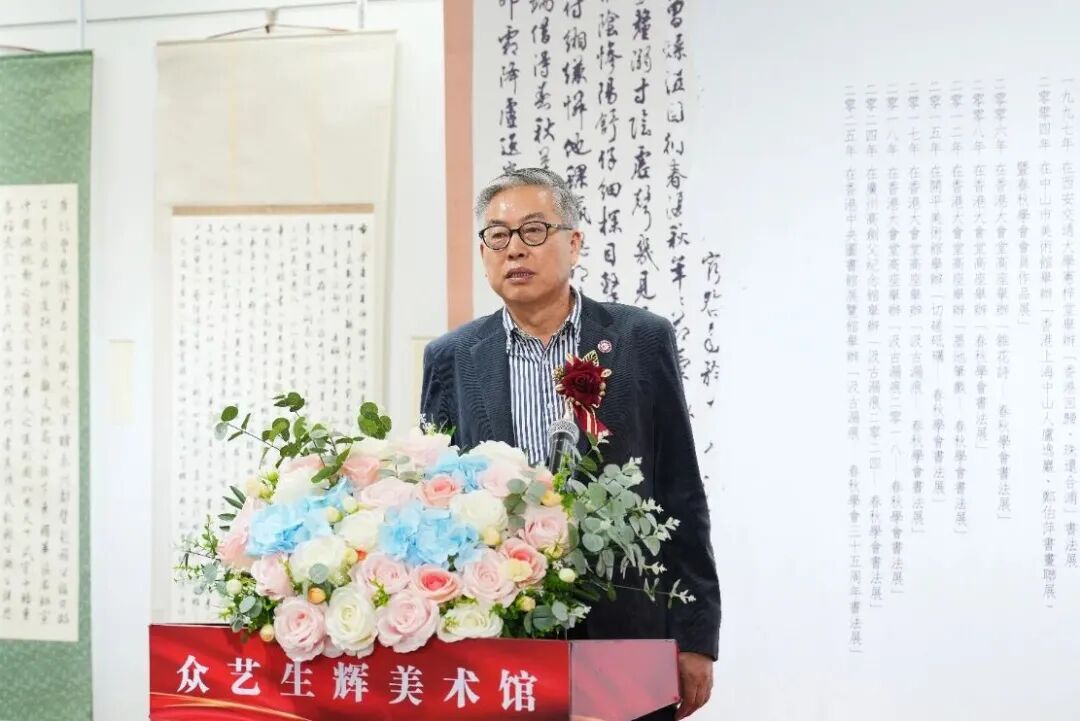 郭思贤在开幕式上介绍了香港春秋学会的历史与现状:春秋学会36年来,始终遵循卢逸岩老师的教导,坚守书法学习的初心与方向。他特别感谢学会内每一位授课老师 ,老师们每周均倾注心力教导、支持学生,助力学生将书法作品带上展览舞台,甚至走进北京。