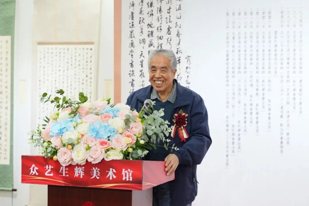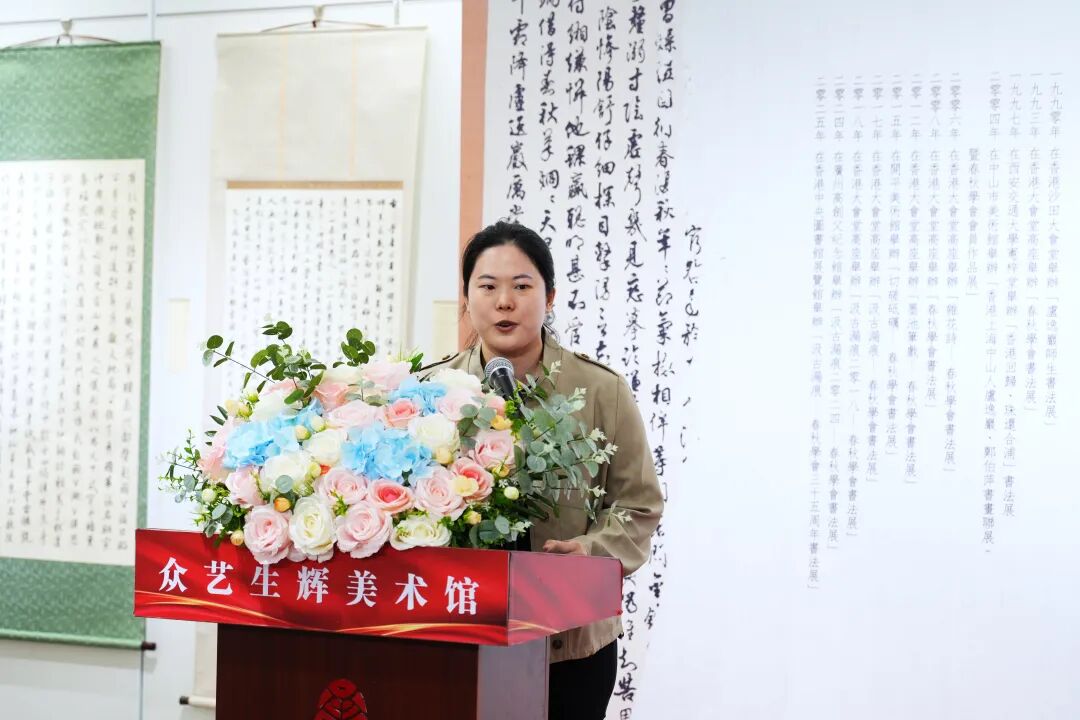 陈小容致辞,为展览筹备倾注心血的每一位付出者都致以了诚挚谢意,这场展览不仅是学会学员书法技艺的一次精彩亮相,更是对“植根传统、砥砺研习”理念的践行,从笔墨间能看到大家对历代碑帖的深耕,也能感受到对书法精神的传承。并且也非常感谢到场的嘉宾,以及美术馆提供的场地及人员支持。
