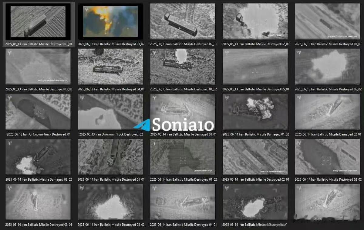 以色列军方释放了大量空袭打击伊朗中程弹道导弹发射车画面。这就是因为,以色列空袭第一天,就几乎打爆了伊朗中远程防空导弹系统。
