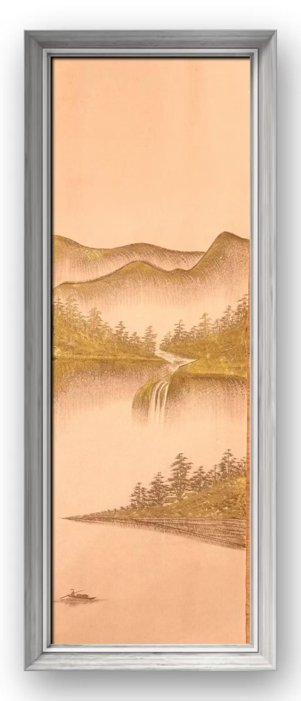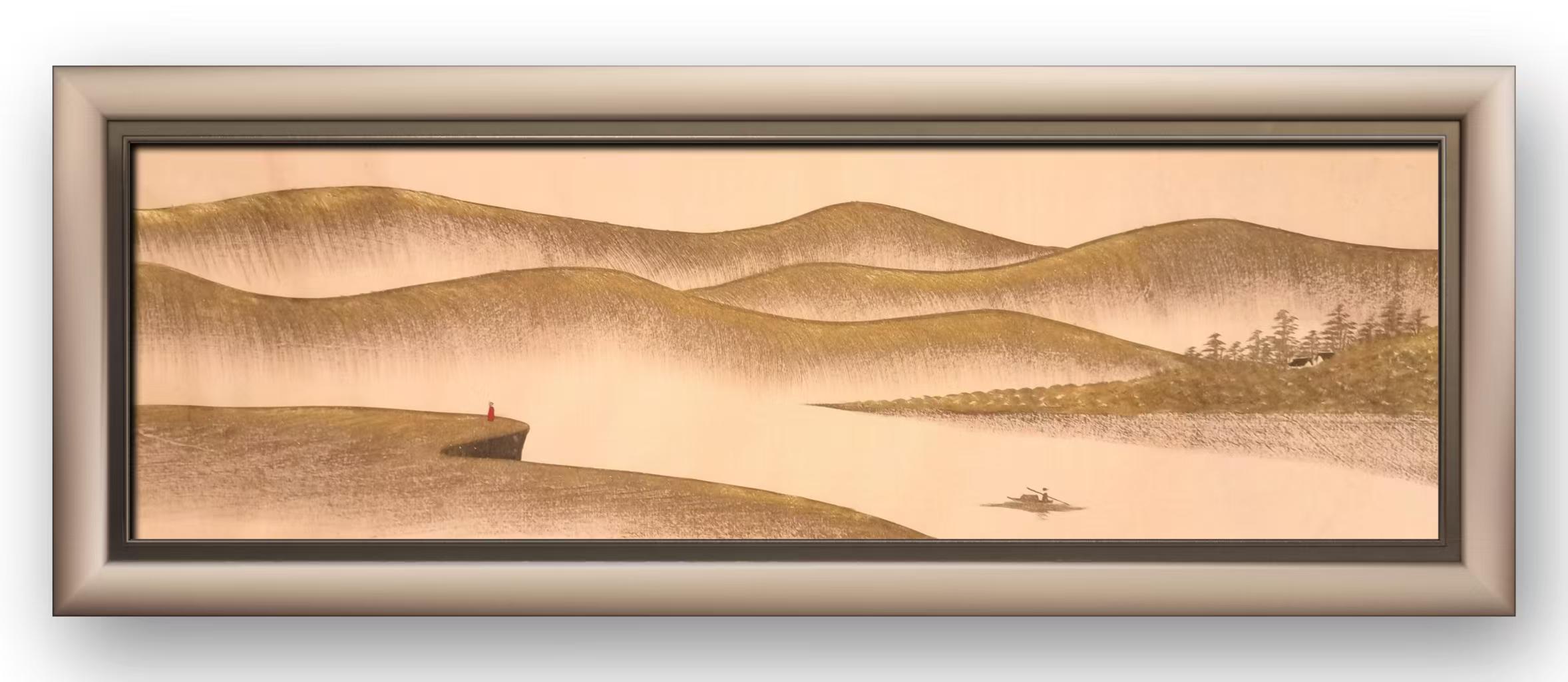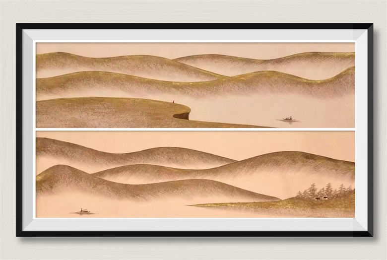 白木顺深耕传统笔墨技法,研析历代山水名家的构图、皴法,汲取中式美学的意境精髓,让白条金皴美学画始终扎根于东方文化的沃土;他跳出传统技法的桎梏,将当代审美融入笔墨创作,以白条的极简形式契合现代审美对简约、高级的追求,以金皴的创新表达丰富画面的视觉层次,让作品既保有中式山水的意境之美,又能与当代观众产生情感共鸣。
