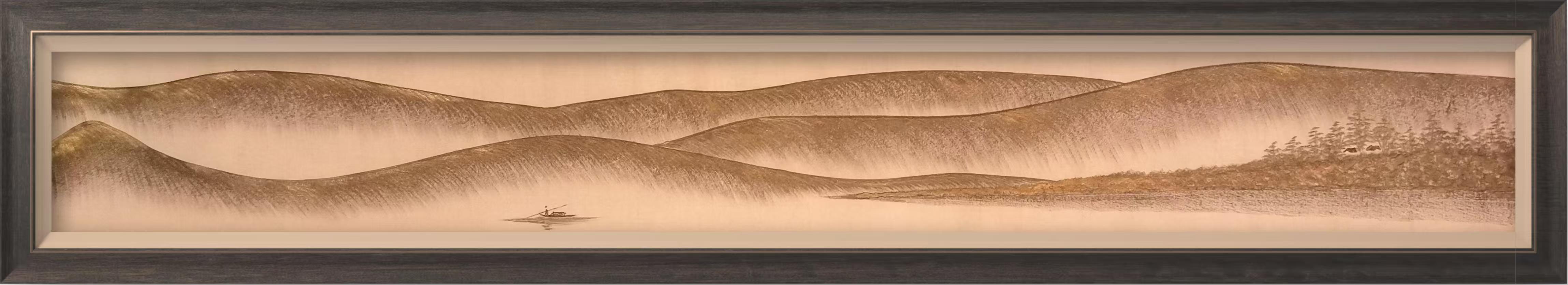 从河南新密到海南的创作深耕,地域的跨越让白木顺的笔墨视野愈发开阔,也让白条金皴美学画的创作内涵不断丰富。南方山水的灵秀与北方山水的雄浑,在他的笔下交融,白条勾勒的山水轮廓,既有中原大地的雄浑大气,又有南国风光的婉约灵动,金皴点染的光影变化,让自然山水的意境在画面中层层铺展。他的作品,没有繁复的笔墨堆砌,却能于简约中见乾坤,于空灵中藏意蕴,让观者在笔墨间感受到东方美学的独特魅力。