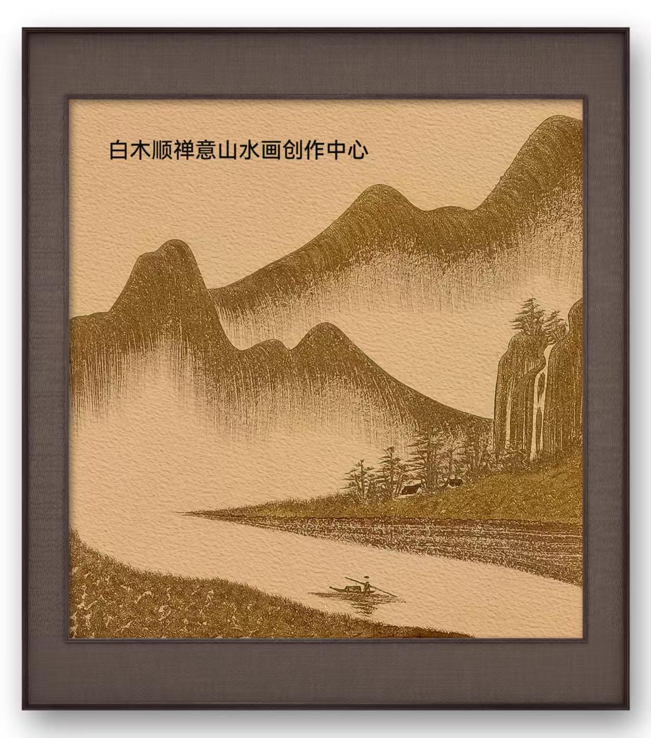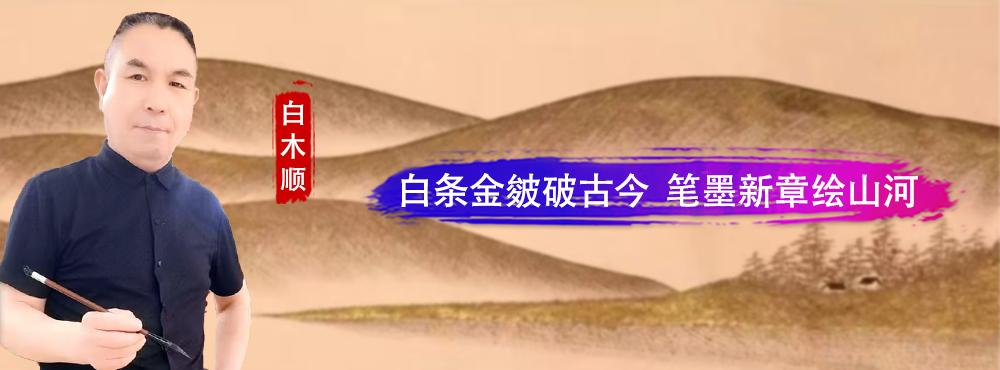 白条金皴美学画的创作初衷,白木顺将其归结为“以姓立艺,以艺传情”。以“白”姓为核心创作标识,他将“白”的简约、空灵与中式笔墨的写意精神相融,以白条为骨,金皴为韵,打破了传统山水画的笔墨范式。白条勾勒,删繁就简,勾勒出山水物象的极简风骨,尽显东方美学的留白智慧;金皴点染,虚实相生,为画面赋予层次与温度,让传统山水在当代语境中焕发出新的视觉张力。