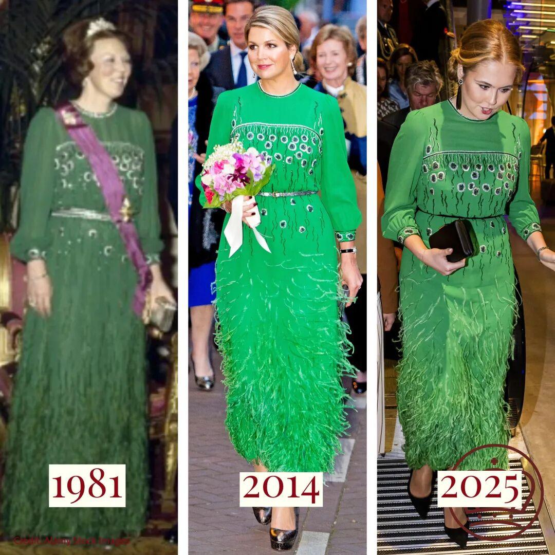 玛克西玛连体裤来自natan,阿玛利亚穿了奶奶衣柜里的绿色鸡毛裙(设计师是Theresia Vreugdenhil)