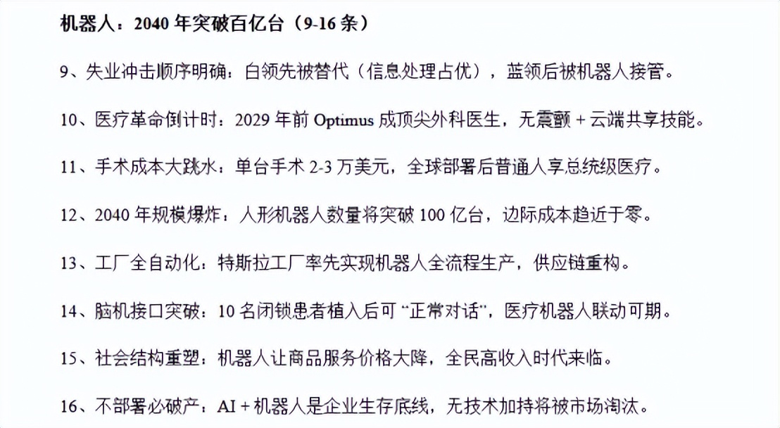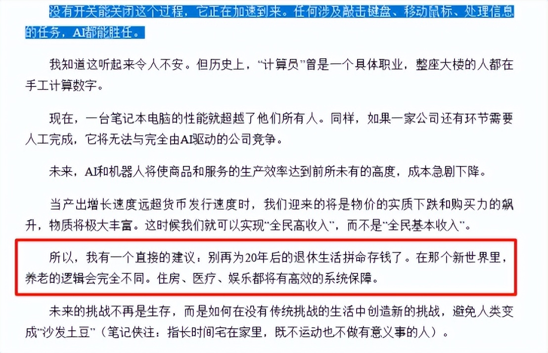 也就是说今年人工智能就要彻底爆发,以后人脑根本玩不过电脑,白领工作要大面积消失,连做手术的医生都要换成机器人,但大家反而会变得特别有钱,想要什么就有什么。