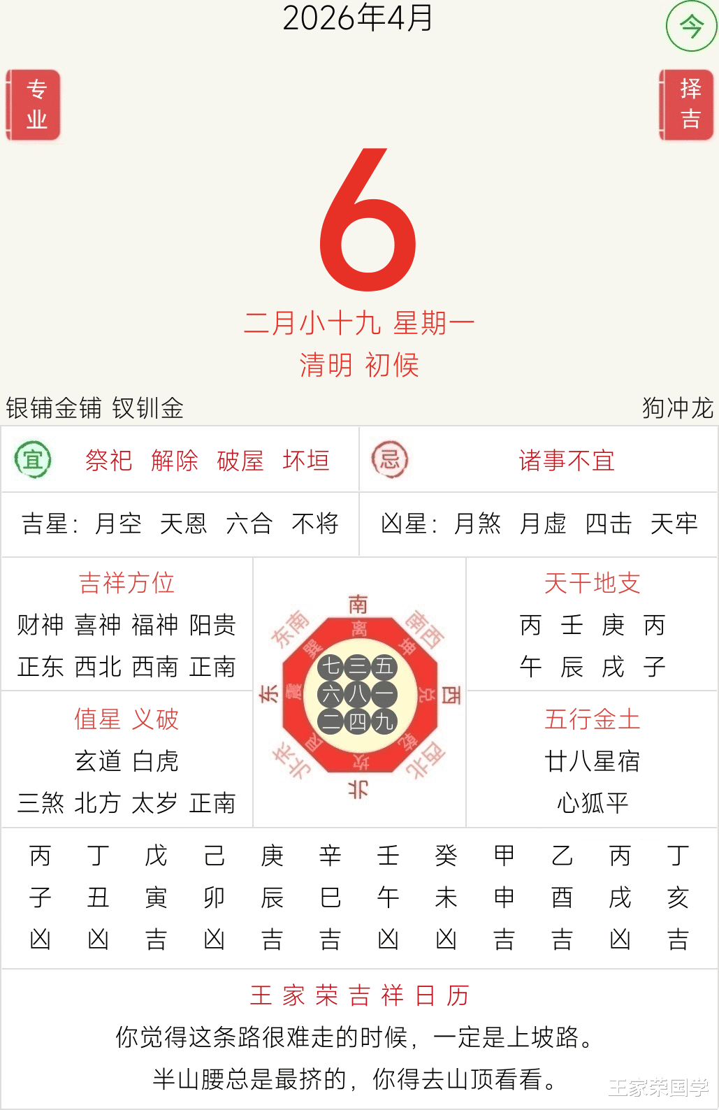 每日适宜:祭祀 解除 破屋 坏垣 馀事勿取