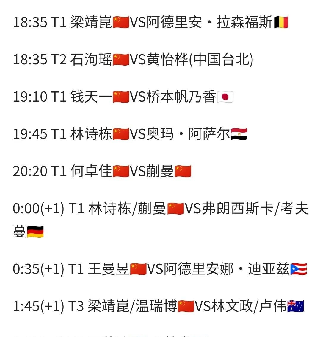而到了明天凌晨时段,林诗栋/蒯曼也将会迎来首秀,两人也是冠军有力争夺者,只要正常发挥,栋曼组合晋级问题不大。后面的王曼昱迎战迪亚兹,王艺迪迎战曾尖,梁靖崑/温瑞博男双首秀,只要正常发挥晋级难度都不大,具体赛程安排如下: