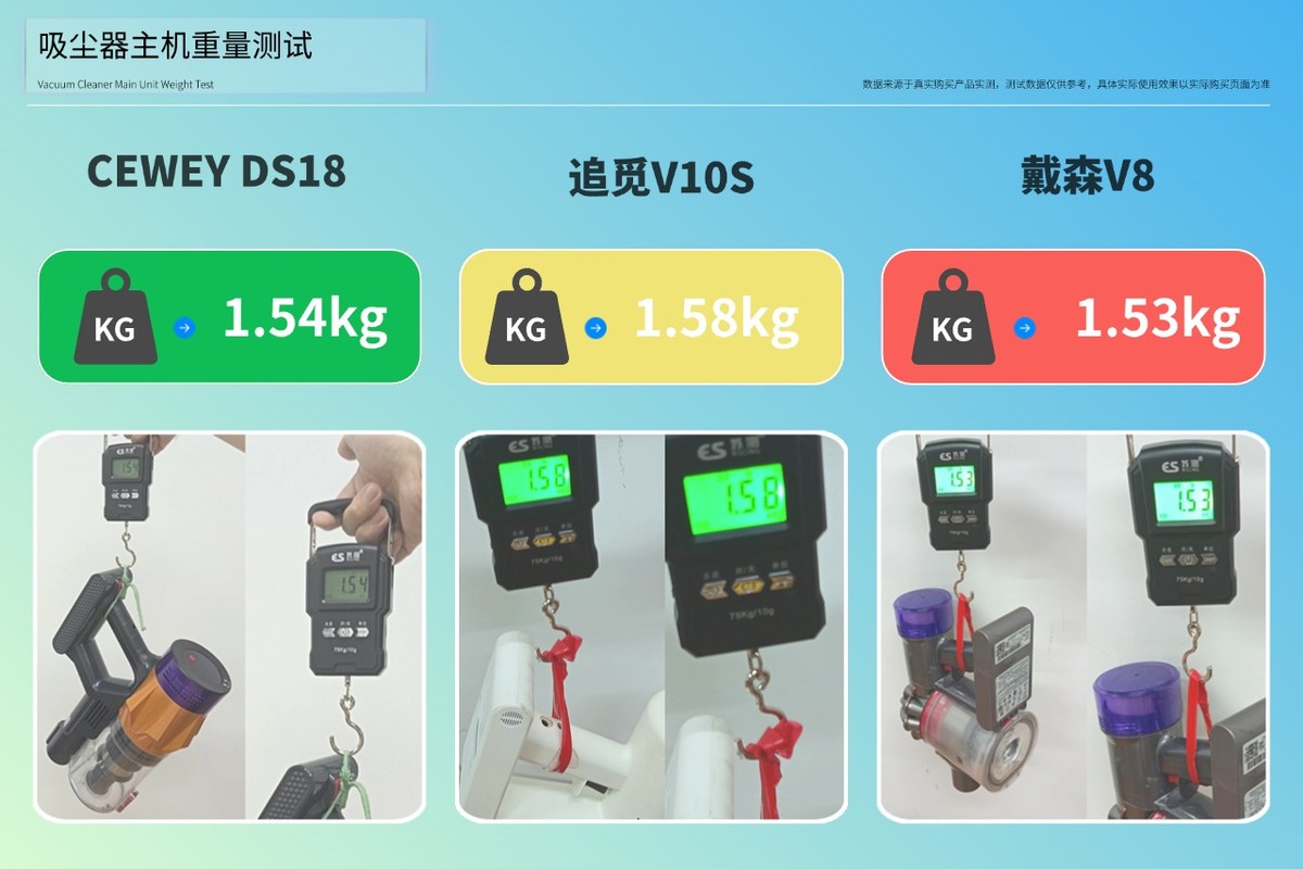 测试方法:我把每台吸尘器的主机拆下来,用电子秤精确称重,记好重量。为了保证测试公平,每台机器测试前都把尘杯清空,电池也装回主机里,确保测试时的状态是一样的。