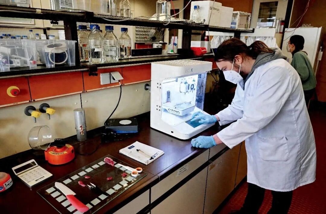 2022年4月,德国南部巴登-符腾堡州一所应用技术大学的实验室内,博士生正在操作一台3D打印机。图/IC