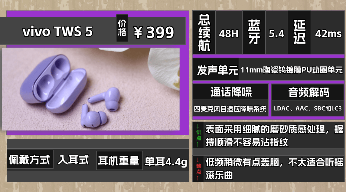 综合实力品牌③ V ivo T WS 5蓝牙耳机