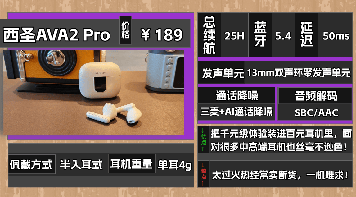 ❏在蓝牙性能上,大家也不用担心,西圣AVA2 Pro采用了全新的蓝牙5.4芯片,在15米以内的复杂环境中都能保持稳定的连接,延时低至50ms,不卡,不断连。即使玩手游也能保持音画同步。而且还具备3Mic+AI通话降噪,嘈杂环境下清晰通话,完全不是问题,简直强无敌!标价在200,却拥有媲美千元耳机的音质和舒适度,被媒体称为是蓝牙耳机中的性价比之王。