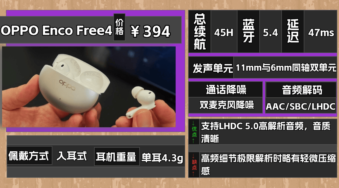 综合实力品牌⑥ O PPO E nco Free4蓝牙耳机