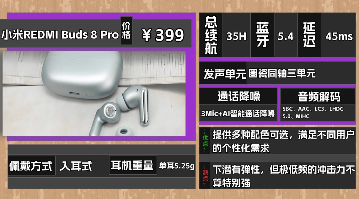 综合实力品牌⑧ 小 米R EDMI B uds 8 Pro蓝牙耳机