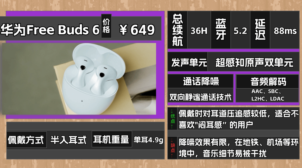 综合实力品牌⑤ 华 为F reeBuds 6蓝牙耳机