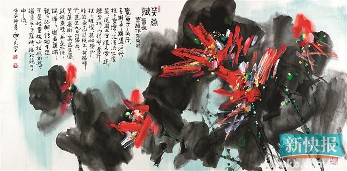 在《风雅潮州》中,许固令的《荷花》以鲜明的红调寄托了对国家富强繁荣、社会和谐和美的赞颂,也承载着海外潮人对故土新生活的向往。荷花寓意“和和美美”,是海外侨胞最喜爱的吉祥意象。许固令说,他从海外回到广州后创作了大量荷花作品,以红色为主调,象征国家的繁荣与社会的和谐。“荷花是可以进入千家万户的题材,它承载着人们对美好生活的向往。”