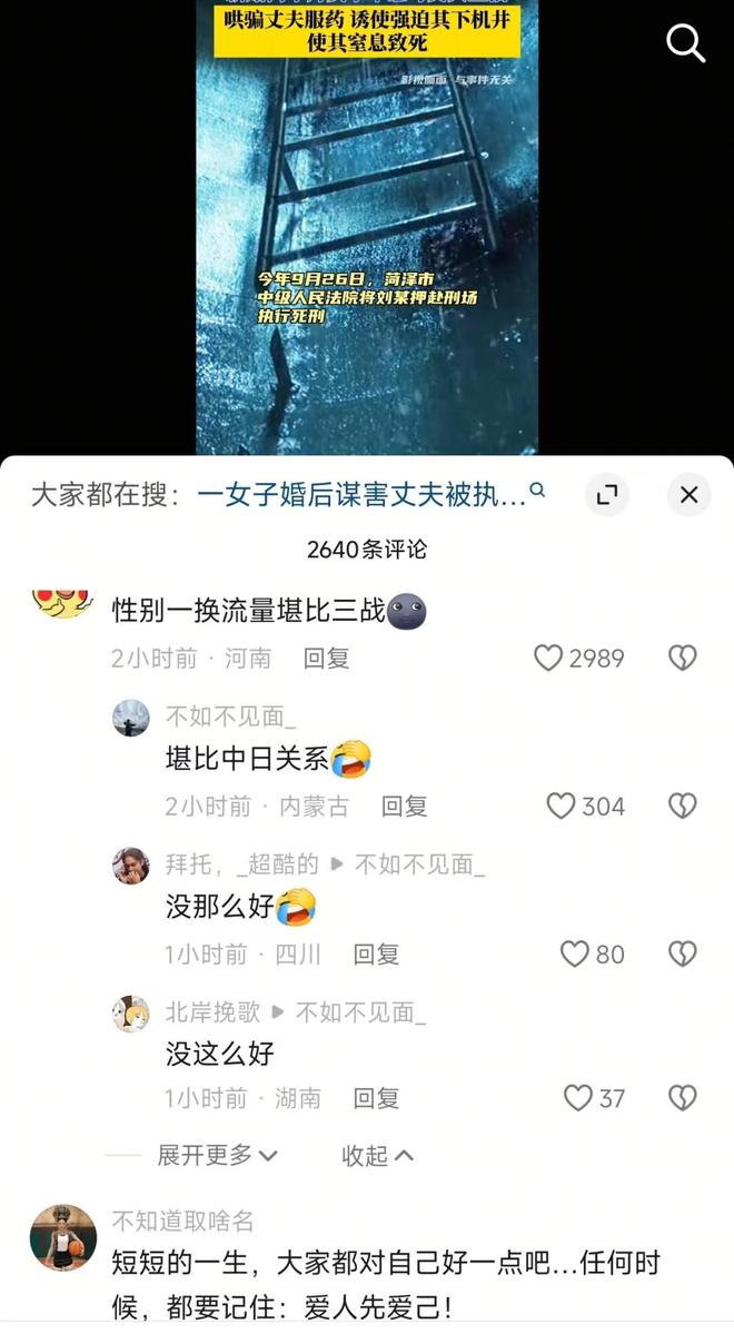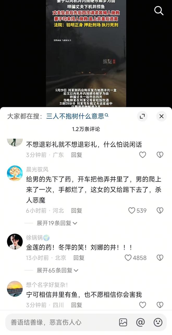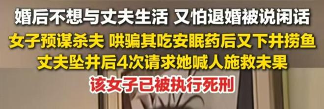 看完这则新闻,实在是让人毛骨悚然,她得凉薄心狠到什么程度才能做出这种事?一个能因为妻子一句解梦在大晚上下井的人,一个听话到井里有鱼去井里抓鱼的人,可以见得平常对妻子有多好,结果她下手毫不手软。