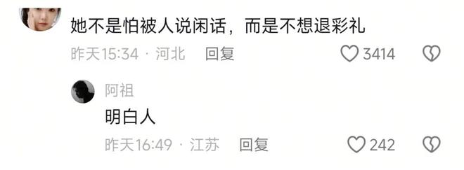 因此,我更倾向于很多网友说的,她不是怕被说闲话,是怕直接要离婚,男方找她家退彩礼吧?