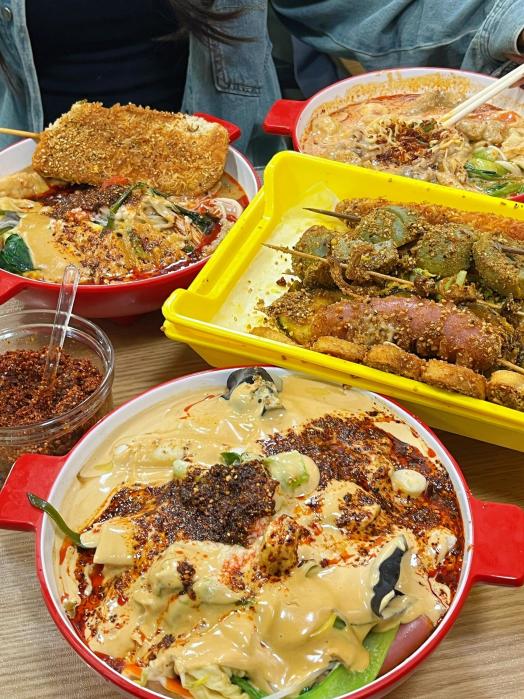 东北风味的黏糊麻辣烫,香到舔碗。牛筋面吸满麻酱汁,黏糊糊超入味,面藕和鱼丸吸足汤汁,配上油麦菜的脆嫩,麻香中带点微酸。