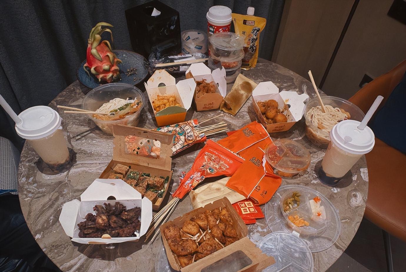 张馨予还晒出一大桌美食照,两位大美女深夜吃吃喝喝聊天,尽显感情好。