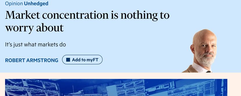 【环球网财经综合报道】近日,英国Financial Times专栏作者Robert Armstrong发表深度文章,聚焦当前美股市场高度集中于少数科技巨头的现象,探讨这一市场格局是否意味着风险上升,并结合相关研究指出,市场集中度本身并非风险核心,高估值才是真正需要警惕的因素,且少数大公司主导市场实为资本市场的常态。