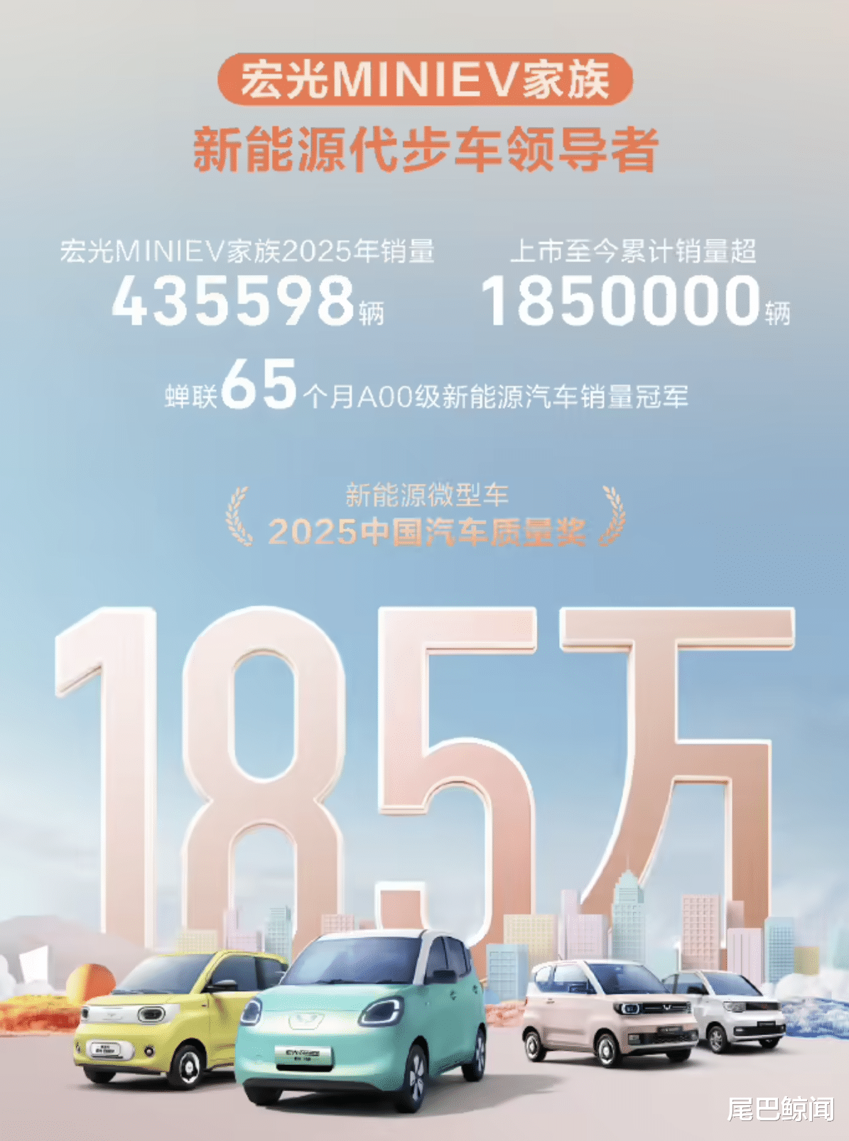 五菱宏光MINIEV累计销量突破185万辆、2025年单年销售超43万辆,并蝉联65个月细分市场冠军的数据,已远超普通「