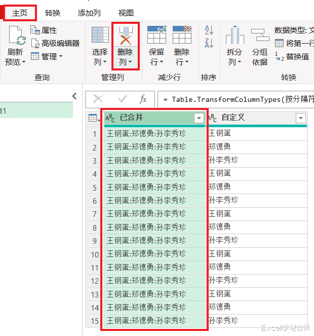 11. 删除“已合并”列。