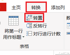 3. 选择任务栏的“转换”-->“转置”