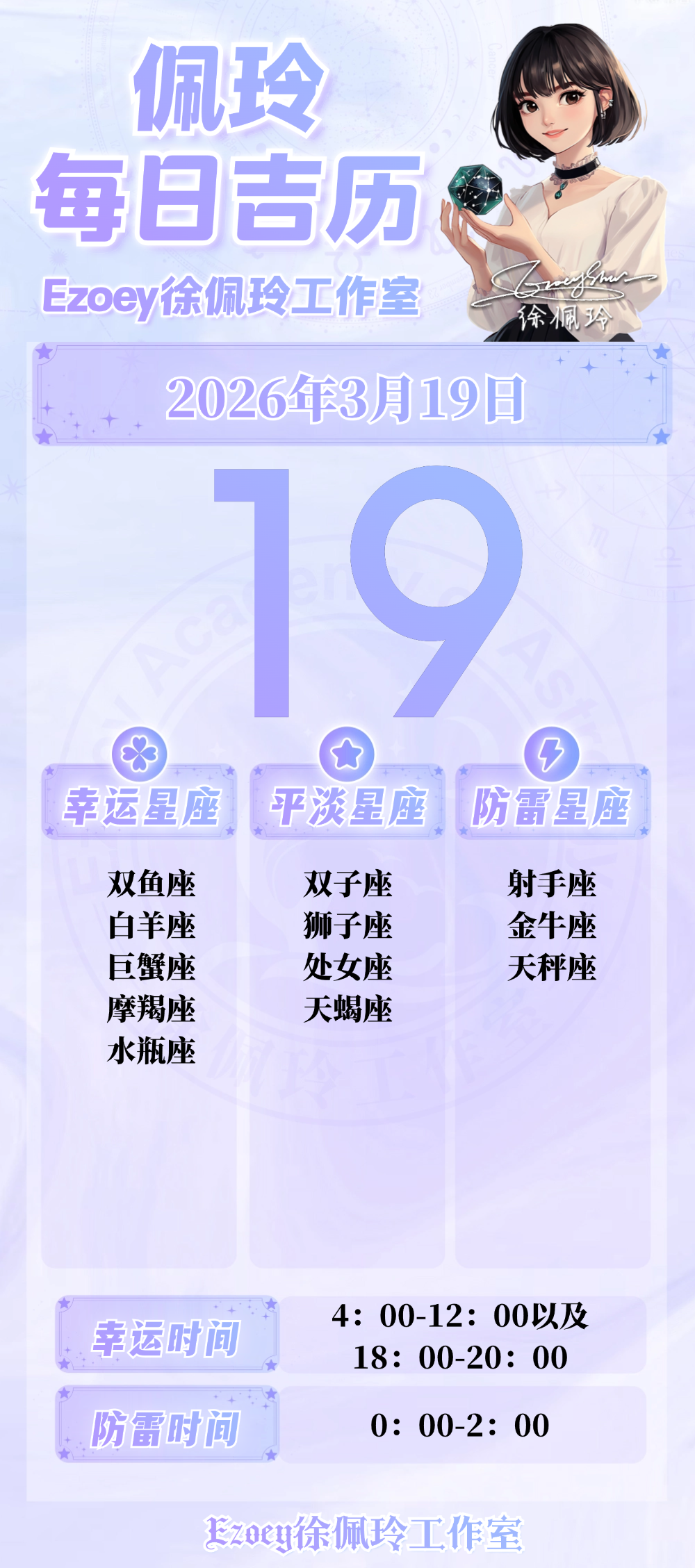 【3.19日播报】新月疗愈日 幸运星座:双鱼座、白羊座、巨蟹座、摩羯座、水瓶座——Ezoey徐佩玲26年星座播报
