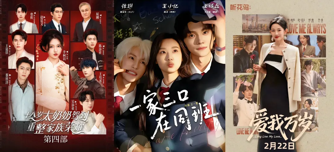 这其中,有目前热度值最高(已破1.8亿)、观看量已破20亿的头部系列新作《十八岁太奶奶嫁到,重整家族荣耀4》;也有凭父母“双穿”的脑洞赢得口碑的合家欢奇幻家庭剧《一家三口在同班》;还有少有的能称作现实题材,以女性“爱己”为议题、金句频现各大社交媒体的《爱我万岁》……