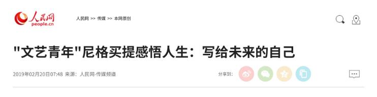人民网《“文艺青年”尼格买提感悟人生:写给未来的自己》