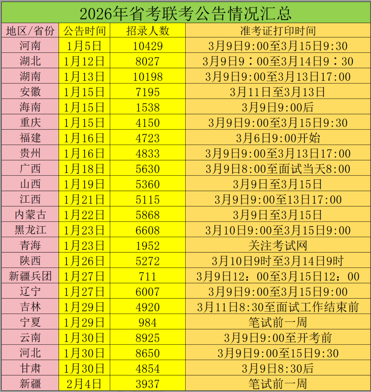 2026年省考联考,从今天开始陆续打印准考证了