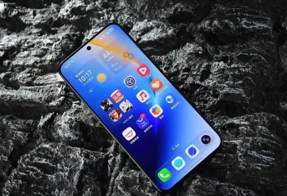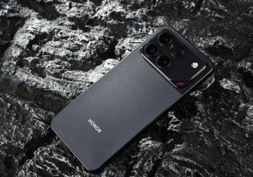 屏幕方面,正面是一块6.83英寸荣耀绿洲直屏,最高6000nit峰值亮度,同时还支持最低1nit的硬件级极暗显示,分辨率为1.5K,支持185Hz超高刷,5920Hz超高频PWM调光,搭载3D超声波指纹,机身是金属中框+玻璃后盖设计,通过满级防水,背部采用与机身同色的横向矩阵相机模组,摄像头旁边有散热风扇,辨识度还是挺高的。