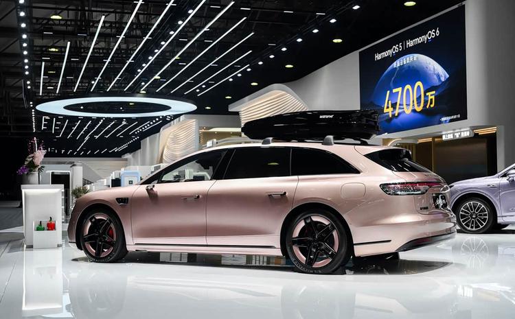 而新款享界S9T的专属色是“星玫粉”。这个名字的构思来源于星光与玫瑰的结合,它想表现的是一种浪漫与精致的调性。这个颜色相对来说会更受特定审美偏好的关注。与此配套的,S9T也提供了新的轮圈选择,其中有一款是与其车色同色的专属轮圈,整体感会更强。当然,“黑曜套件”在这里也同样可以作为选装。
