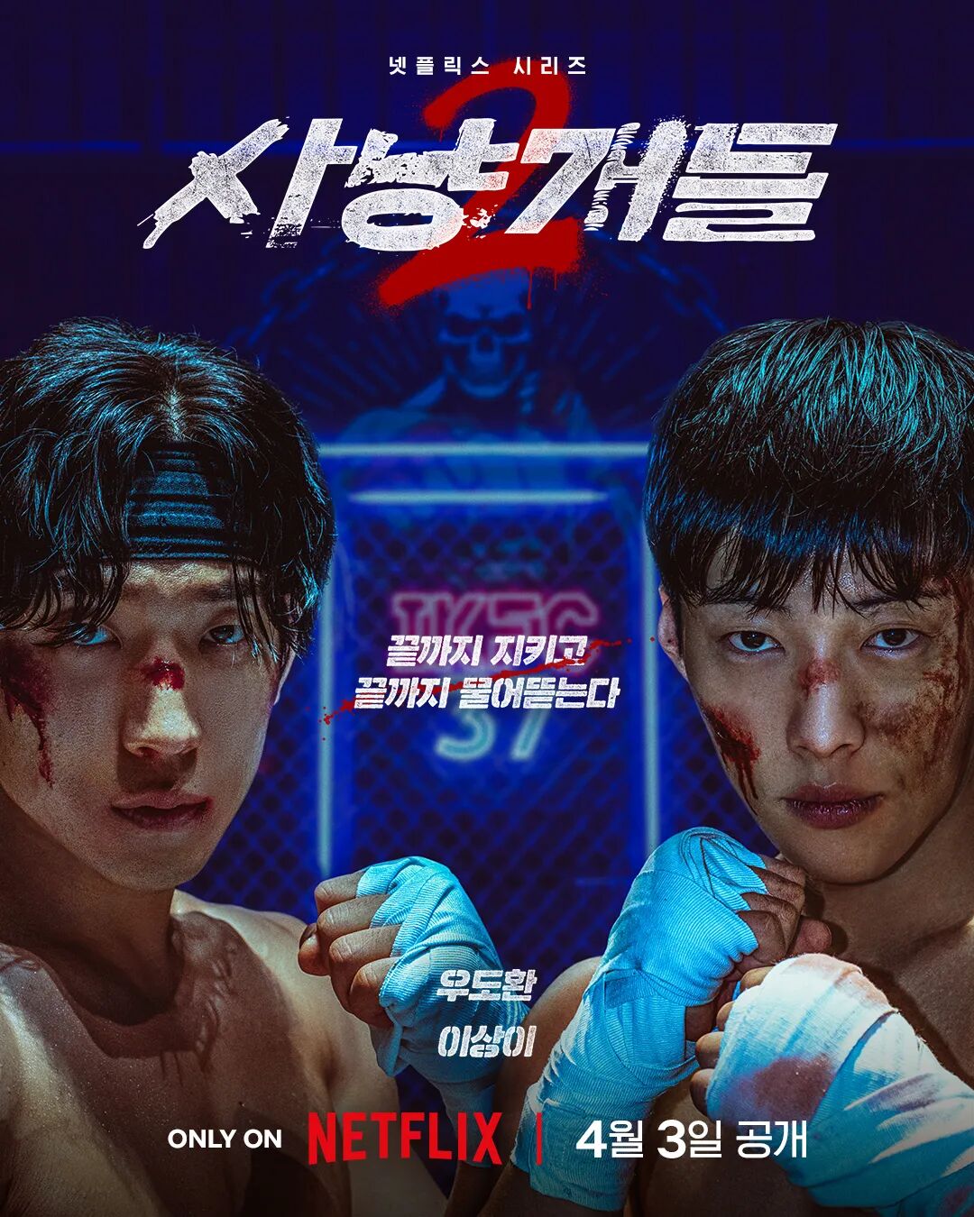 洪偶真从一名拳手,转型为建优的教练。这份转型,从不是放弃与退缩,而是他主动把光芒让给了建优。第一季里,两人还是并肩作战、彼此托付的搭档;到了第二季,偶真甘愿退居二线,默默为建优铺路,却在废弃场地搏斗中险些丧命——尹泰俭用刀具划破他的手腕,鲜血喷涌而出,他倒下的那一刻,建优眼中的愤怒几乎要冲破屏幕。