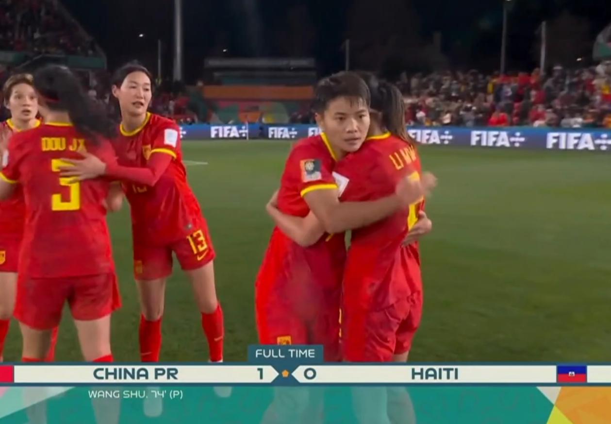 这场比赛中国队在绝大部分时间之内,场上少打一人的不利局面之下,在下半场比赛,凭借着替补登场的王霜打进的点球,最终1比0击败了海地队。