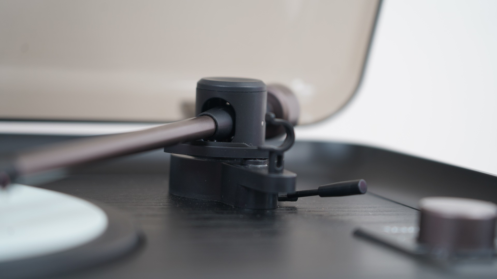 唱臂放下去的时候阻尼感还行,不会太松,也不会硬邦邦的,有点那种慢慢落下去的从容感。其实黑胶之所以有仪式感,很大一部分就来自这些动作本身。你伸手把唱针放下去,等转盘转起来,音乐一点点出来,这个过程跟手机里点一下播放列表真是两种状态。