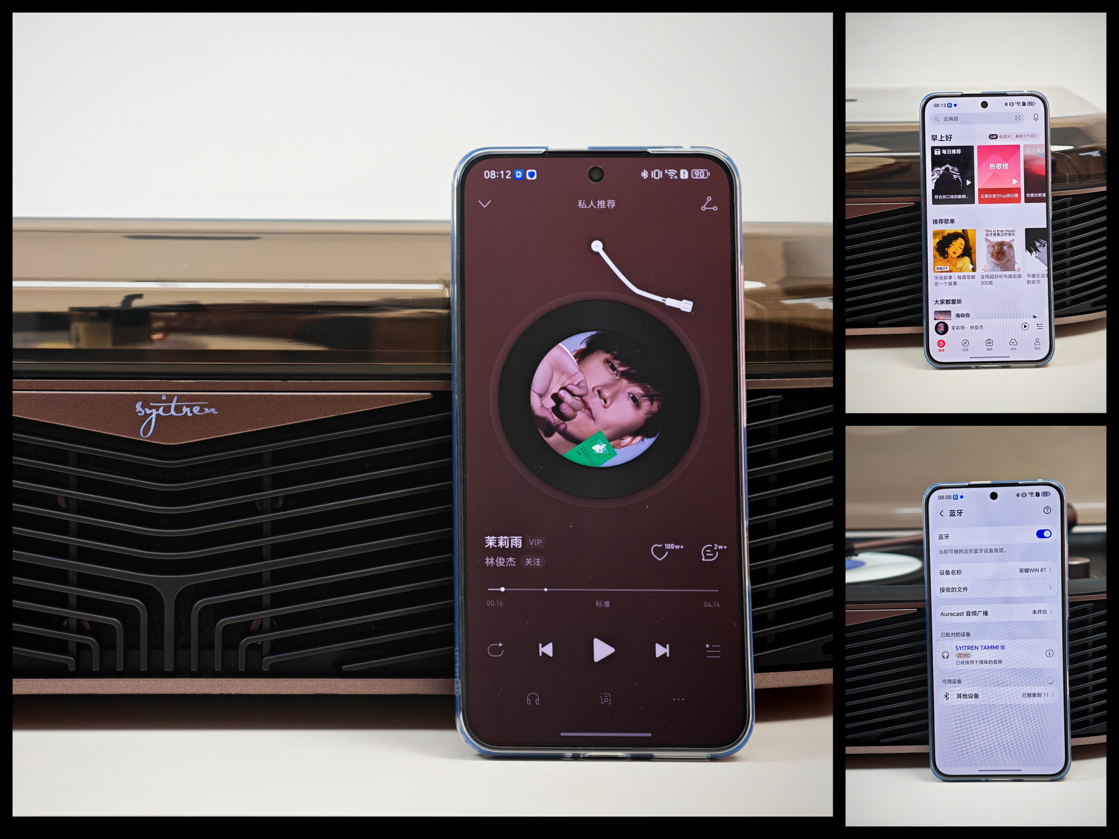 蓝牙5.3也是我后来用得挺多的一个功能。原本我以为自己买黑胶机之后,主要还是放唱片,结果真摆在家里几天后发现,平时懒的时候,直接手机连蓝牙播歌也挺方便。尤其工作的时候不想老起身换唱片,蓝牙模式就很省心。连接速度挺快,稳定性也还行,我在客厅和书房之间走动,基本没怎么遇到断连。这个功能虽然听起来很现代,跟黑胶有点反差,但放在家用场景里其实很合理。不是说你买了黑胶机之后就必须活在纯模拟世界里,很多时候,一台机器既能满足你想慢下来听盘的心情,也能照顾到你平时随手放歌的便利,反而更符合大多数人的真实使用习惯。