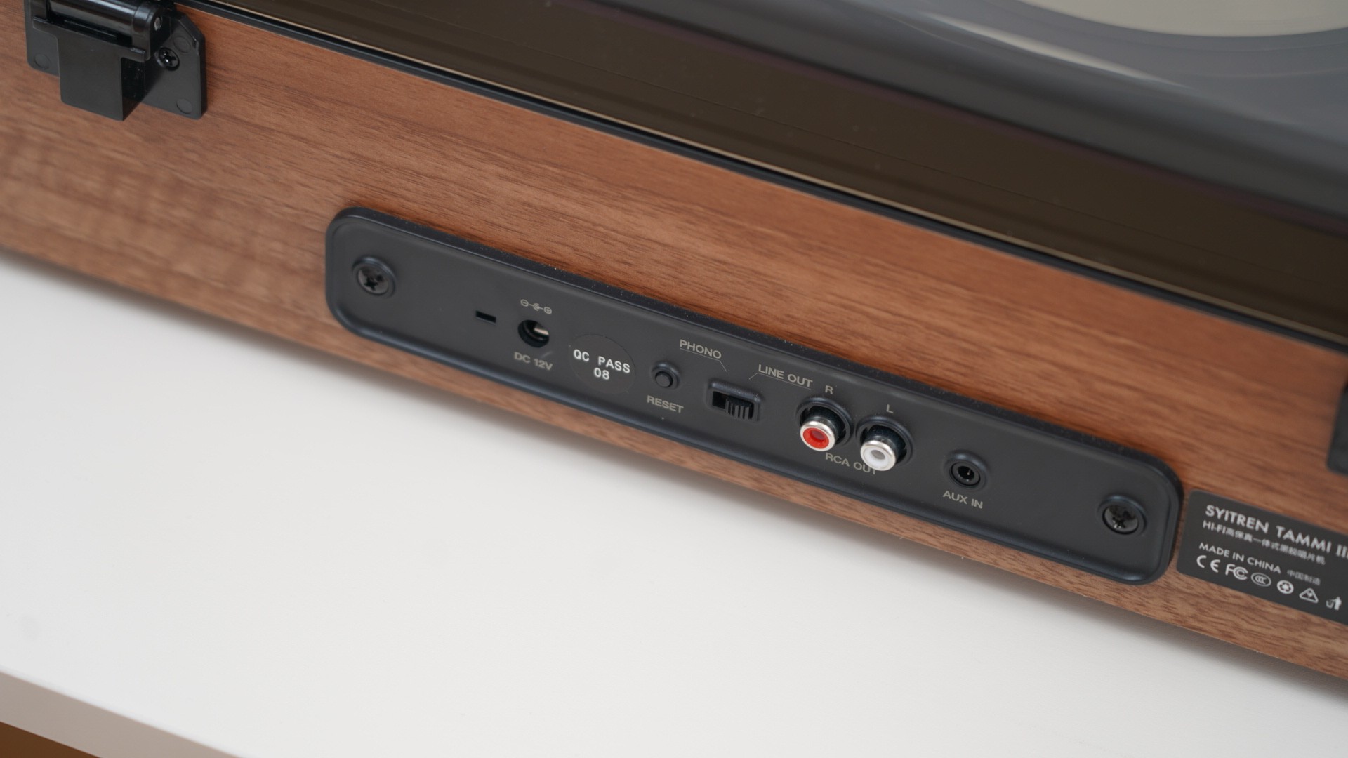另外我觉得它作为家用黑胶机,实用性也考虑得挺全。很多人现在买黑胶机,不会只拿来播黑胶,平时还是会想接手机放点歌,或者以后再加一对音箱。这时候机器的拓展性就很重要。Tammi这台支持RCA输出,这意味着你后面如果想接外置音箱或者功放,玩法是能往上走的,不会被一台一体机彻底锁死。对想慢慢升级家里听音系统的人来说,这个点挺实在。
