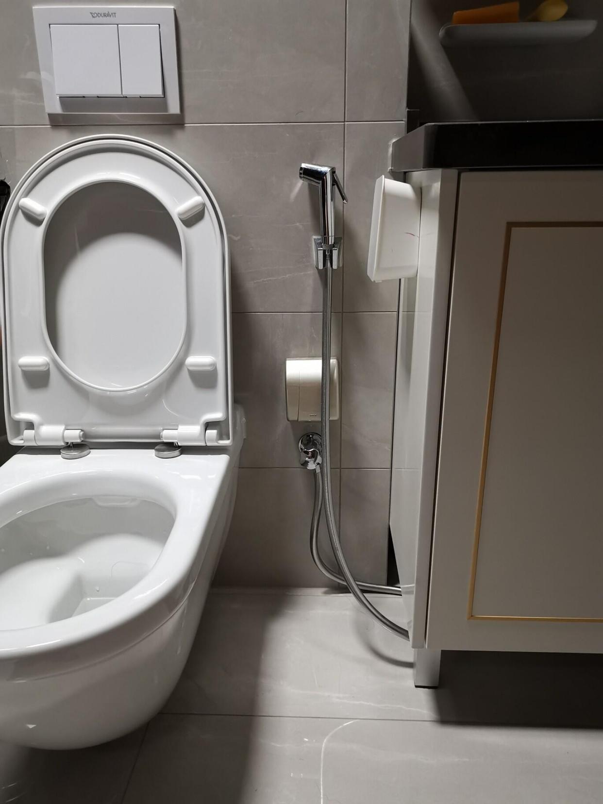 马桶旁装个喷枪真的是懒人福音,其特点在于可以加压,让水枪头出水更有力,马桶的顽固污渍滋两下就全冲走了,上厕所溅马桶上了也能随手冲干净。